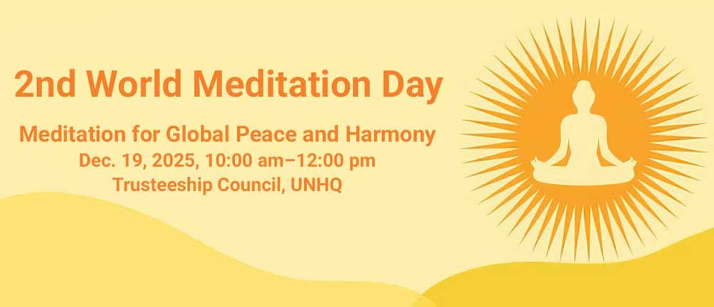 We hope you’ll enjoy the highlights of this historic event at the United Nations. We look forward to having you join thousands of people worldwide this Sunday, December 21, at 8 am and 5 pm, for the largest ever wave of global group meditations to celebrate the official Second UN World Meditation Day.