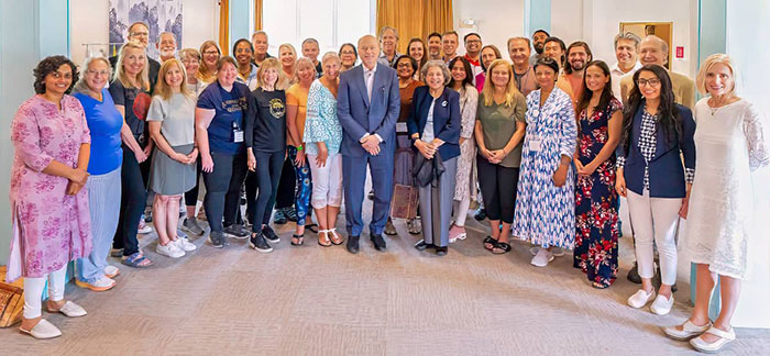 Meditators at the Spring 2024 National TM Retreat with Dr. John Hagelin (center)