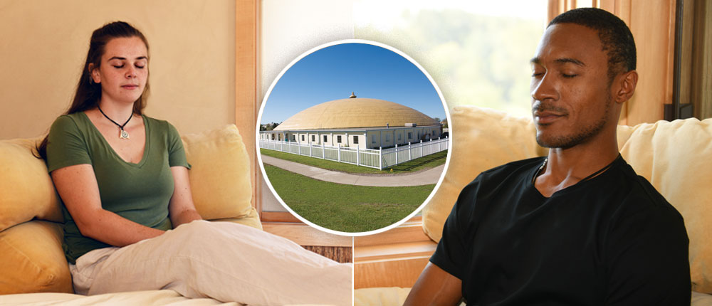 Large groups practice the TM-Sidhi program together each day in the Golden Domes in Fairfield, Iowa